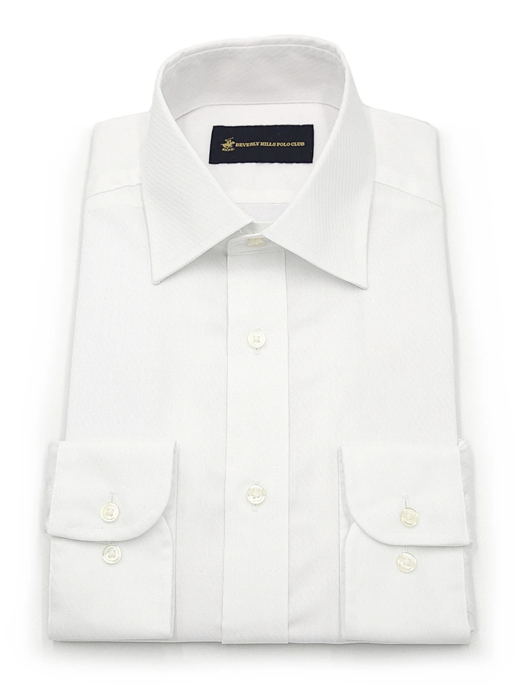 【形態安定】長袖ワイシャツセミワイド白ドビー織柄無地ビバリーヒルズポロクラブ通年