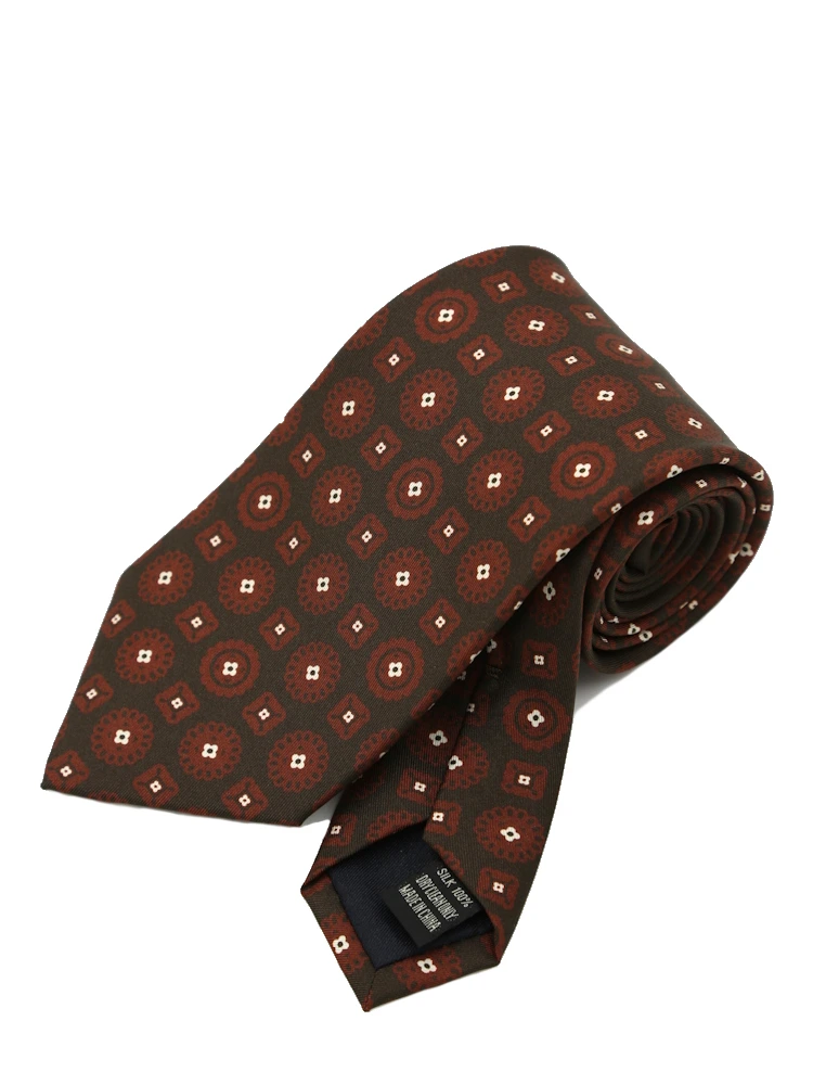流行のプリントを使い、こなれ感とトレンド感を演出したネクタイです。