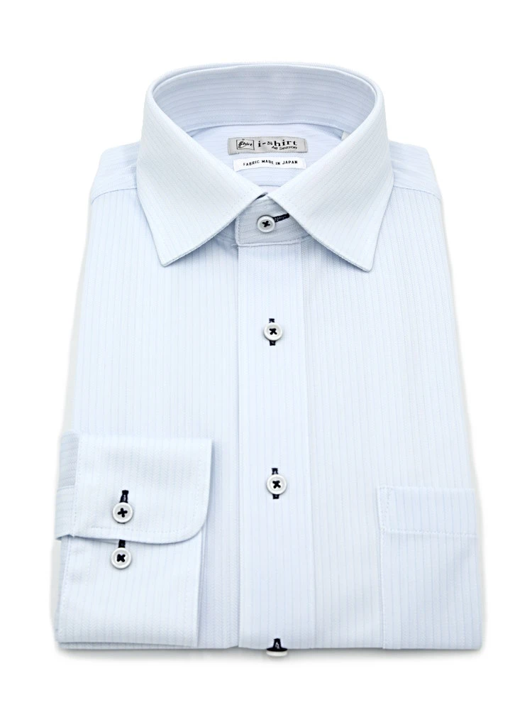 【完全ノーアイロン】長袖 アイシャツ セミワイド ヘリンボン ワイシャツ i-shirt 通年(サックス)