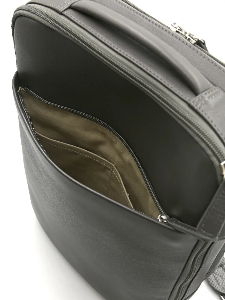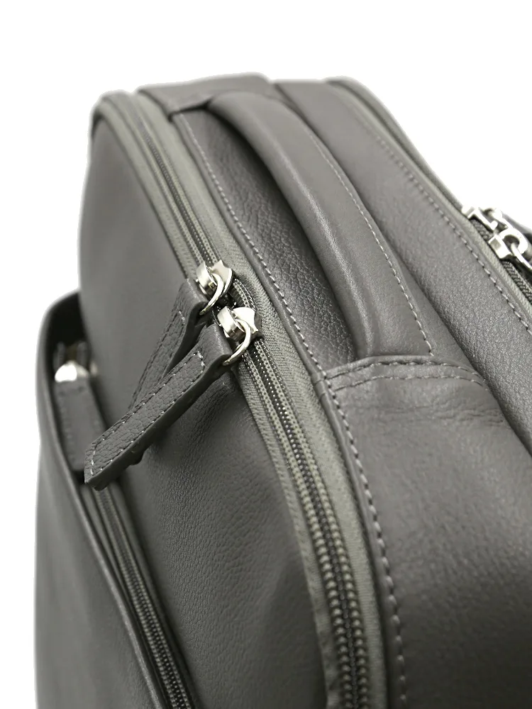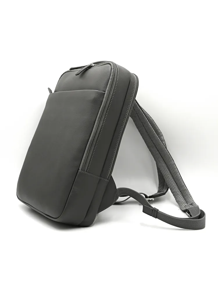 【本革使用】リュック LWG認証レザー 背面メッシュ PC収納可 通年(C.グレー)