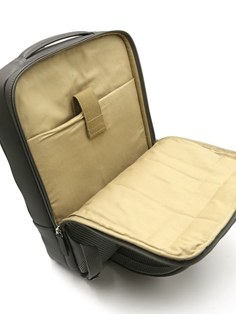 LWG認証の牛革を使用した、キレイ目なデザインのレザーリュックです。