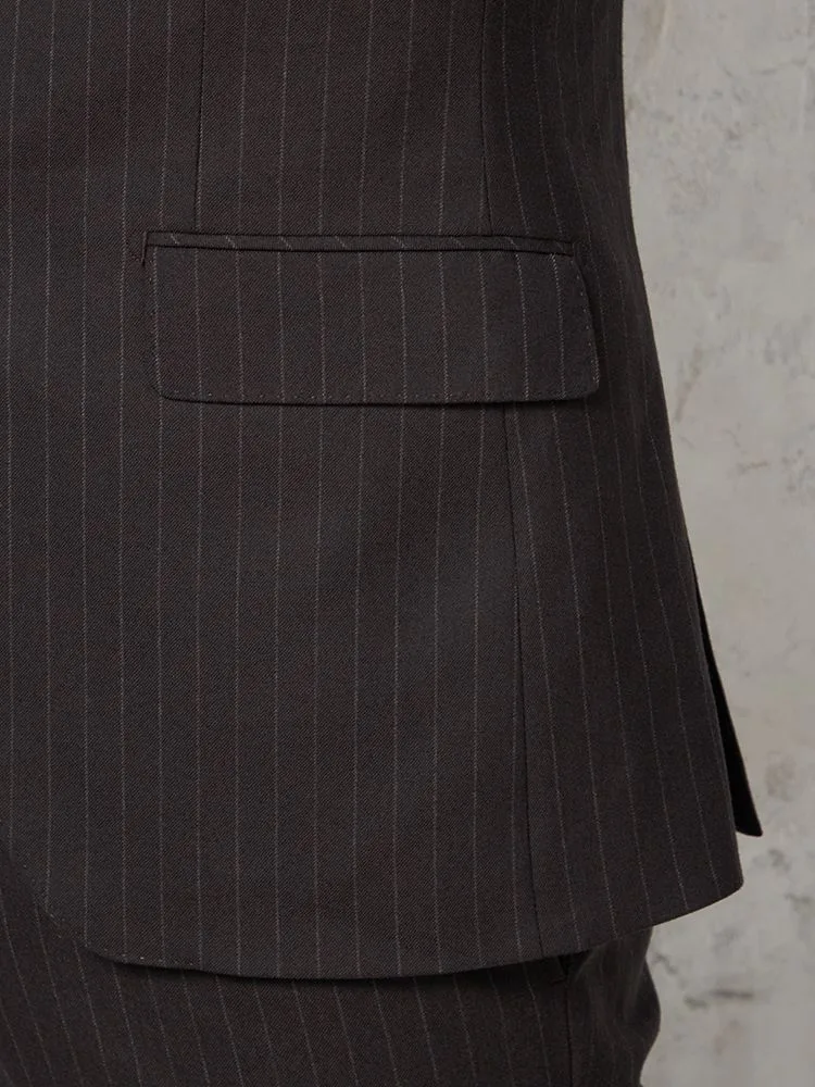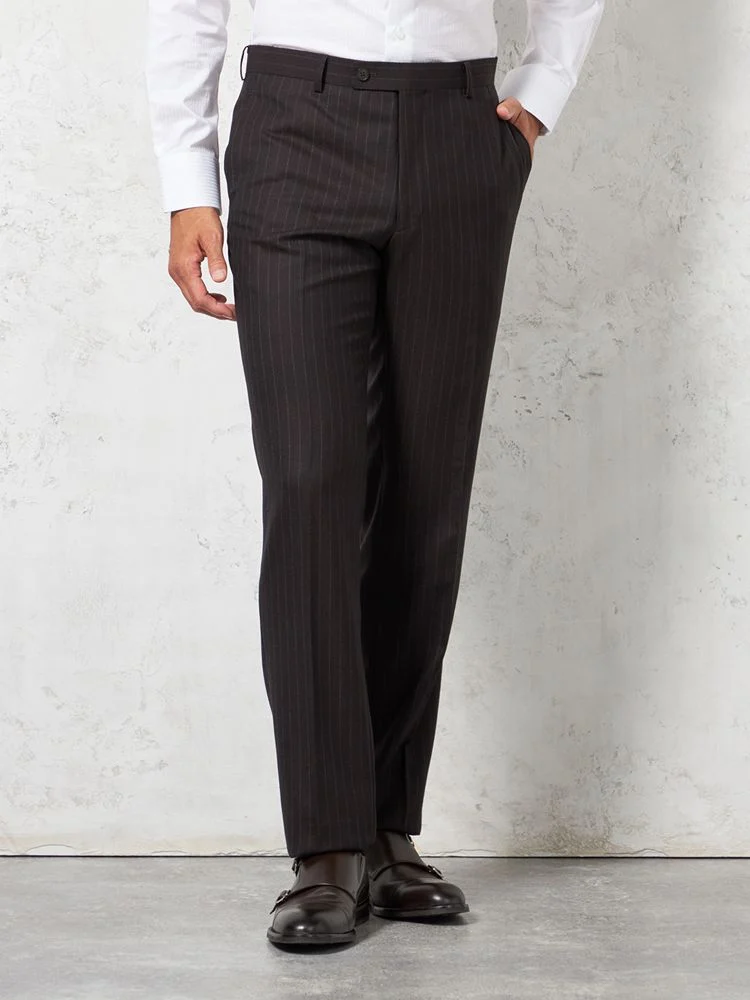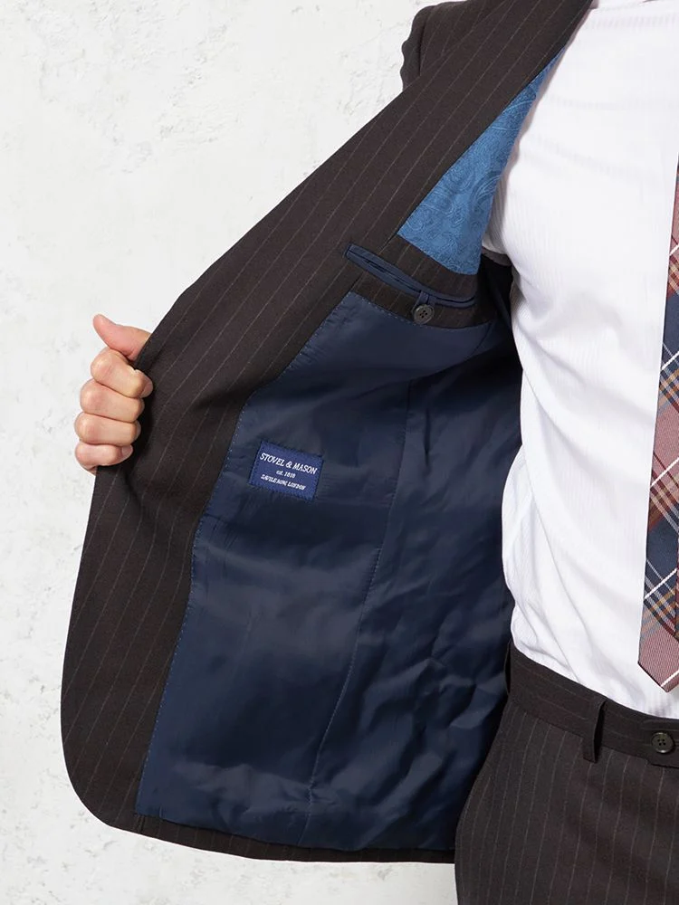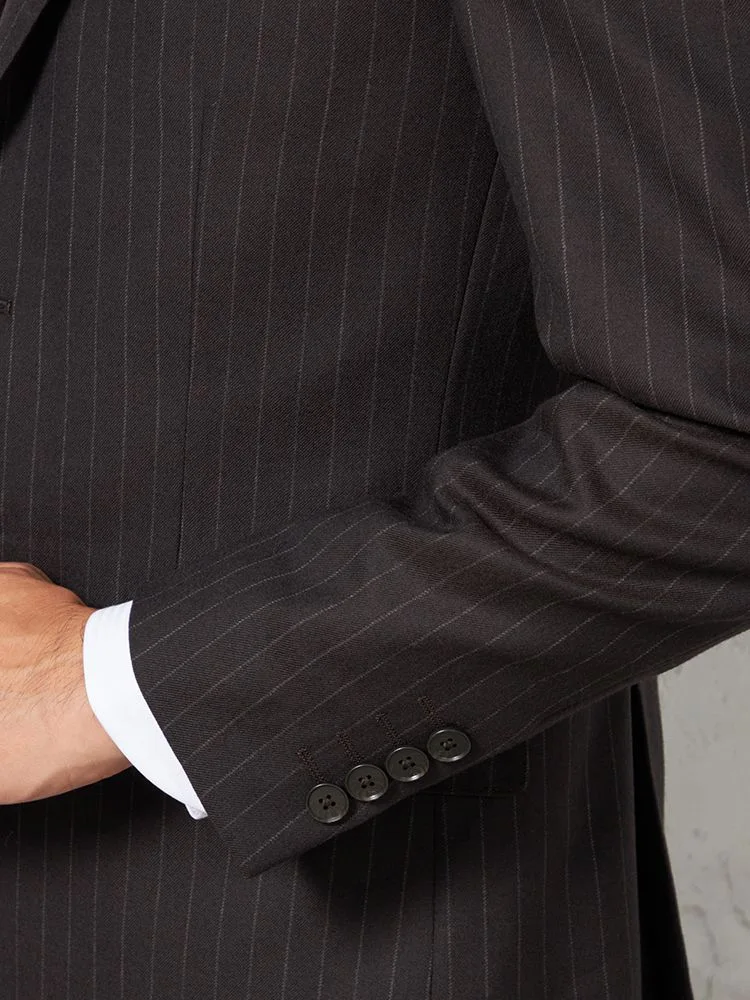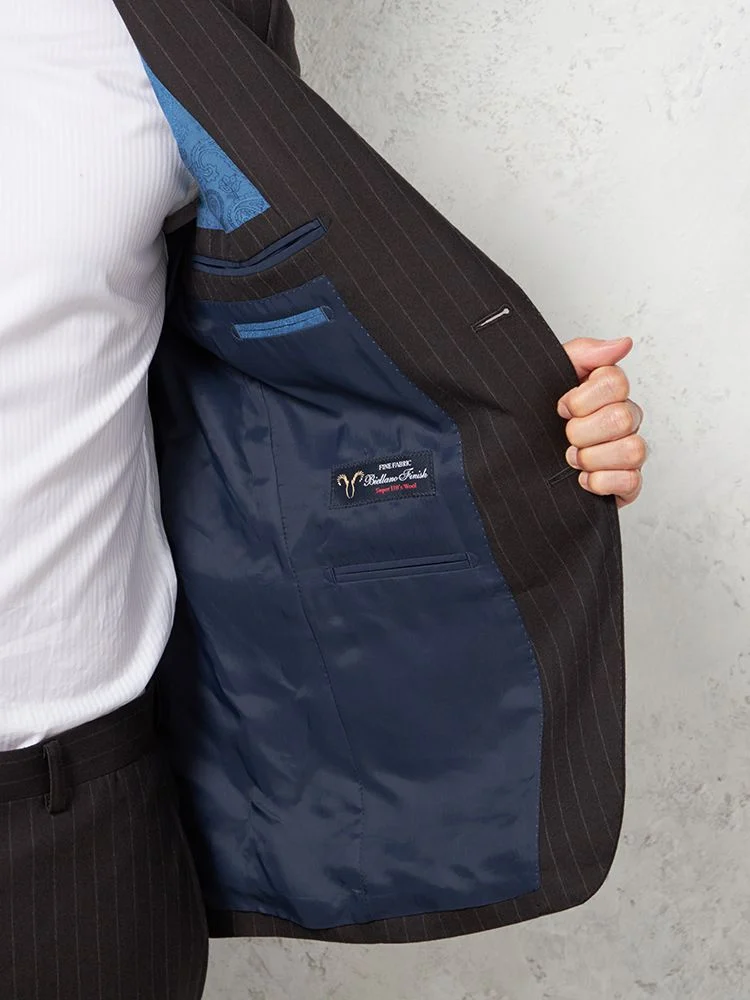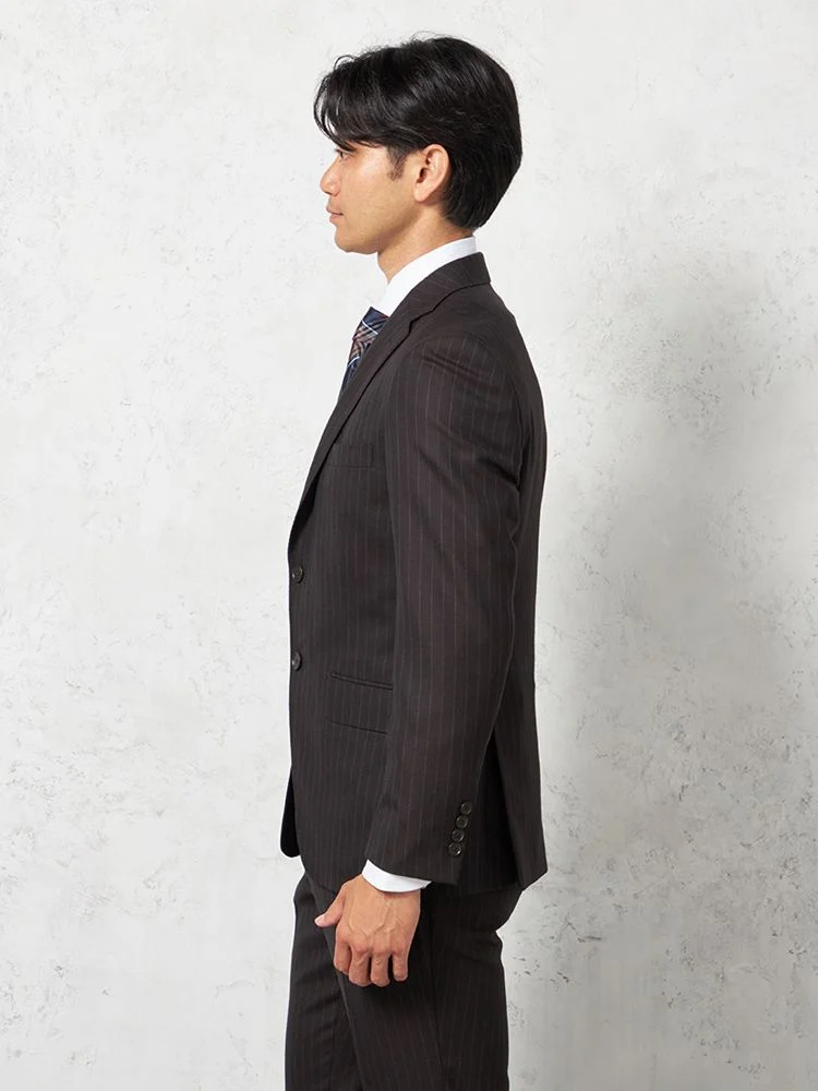 格式と華やぎを併せ持つ英国調ストライプデザインのウールスーツ。