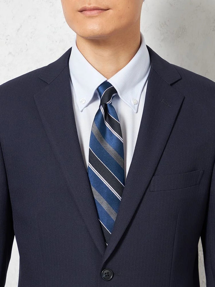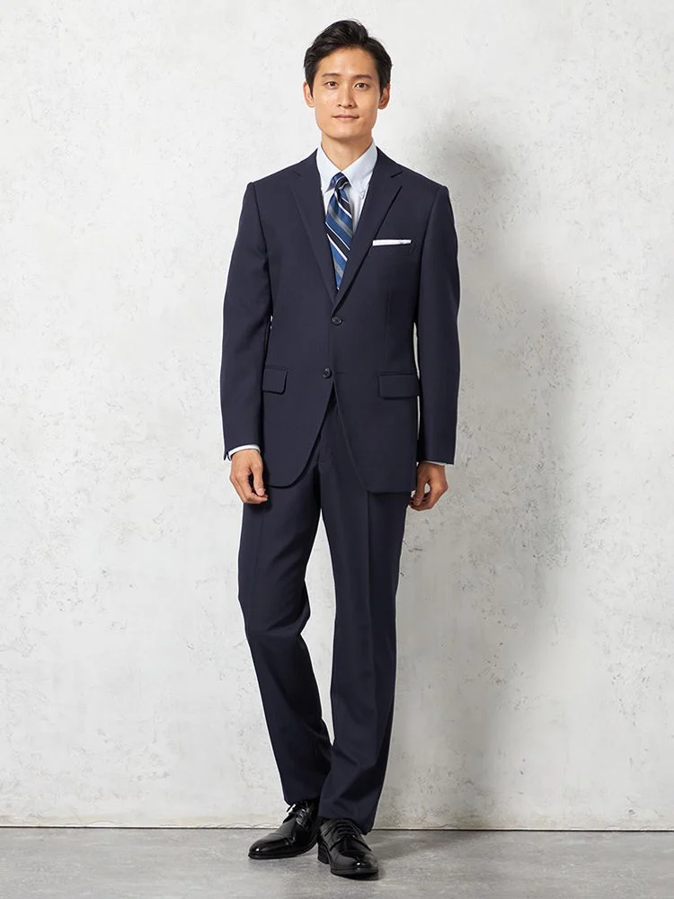 【即納】スーツ2つボタン【WEB限定】上下ウォッシャブルネイビーシャドウストライプ