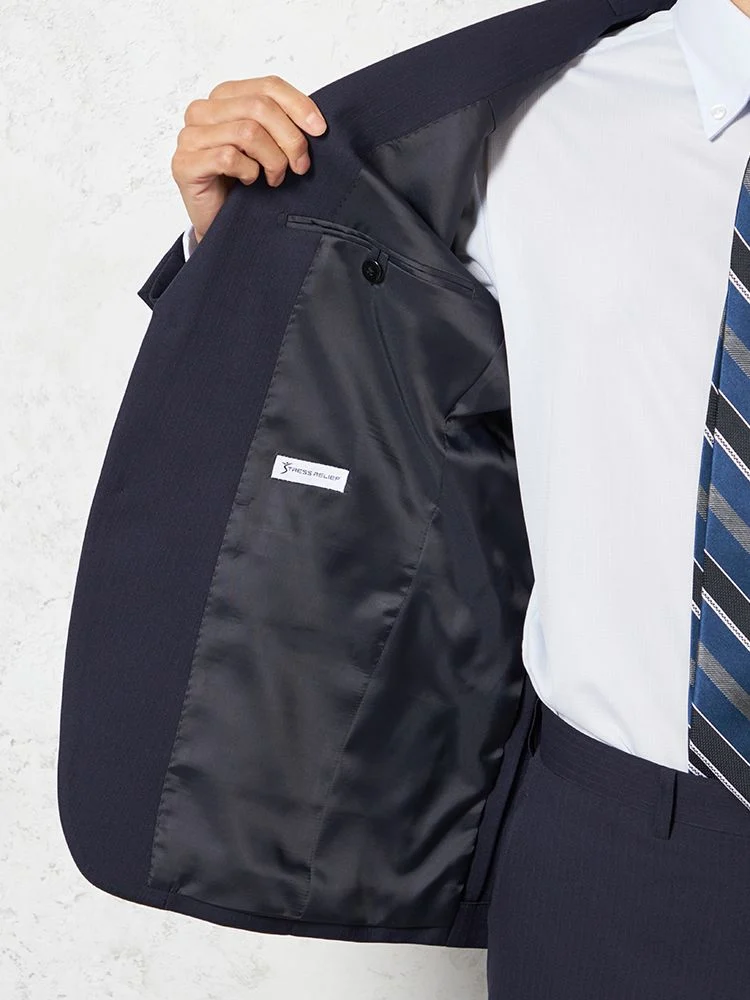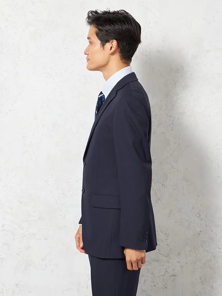 【即納】スーツ2つボタン【WEB限定】上下ウォッシャブルネイビーストライプ