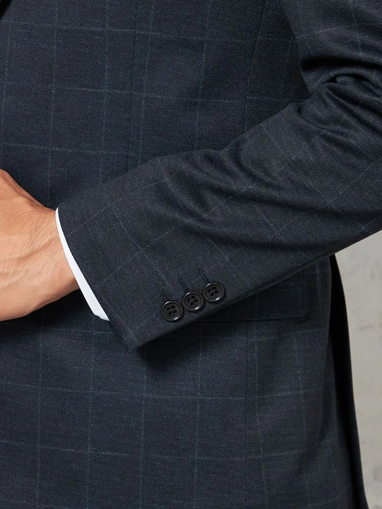 【上下ウォッシャブル】スーツ2つボタンウールライクチェックnero秋冬【スリムデザイン】