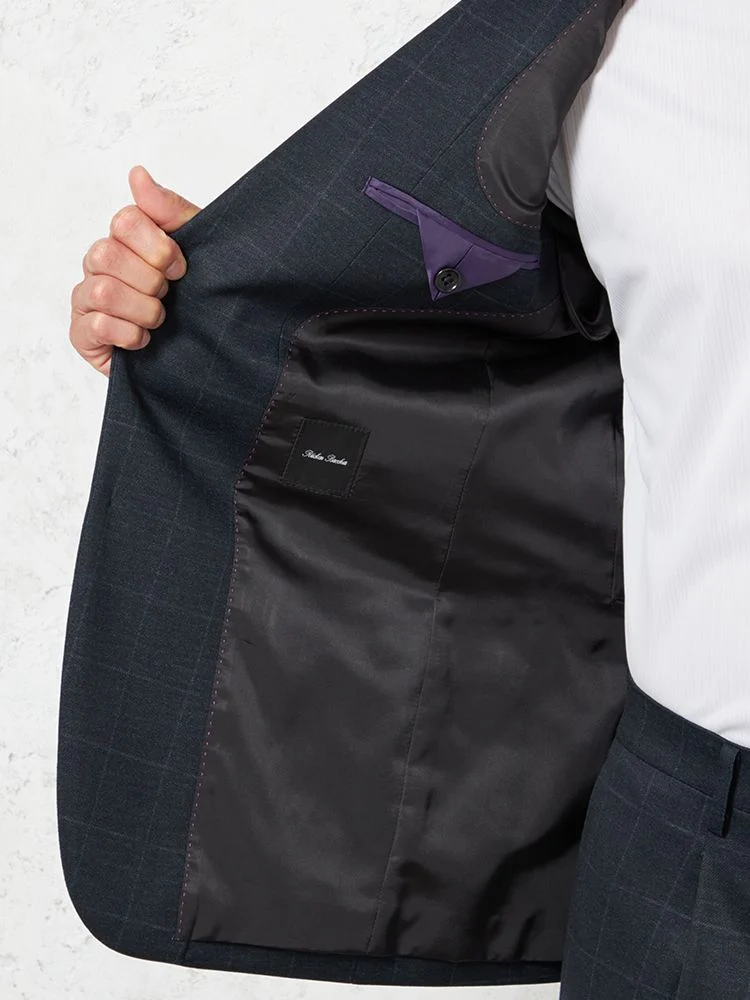 シャープな知性を感じさせる格子柄のスーツセット。