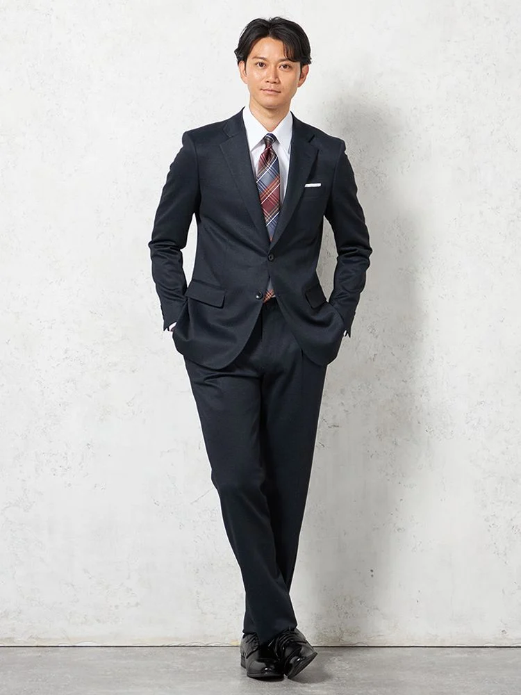 【上下ウォッシャブル】スーツ 2つボタン ニット素材 織柄無地 リッケンバッカー 秋冬