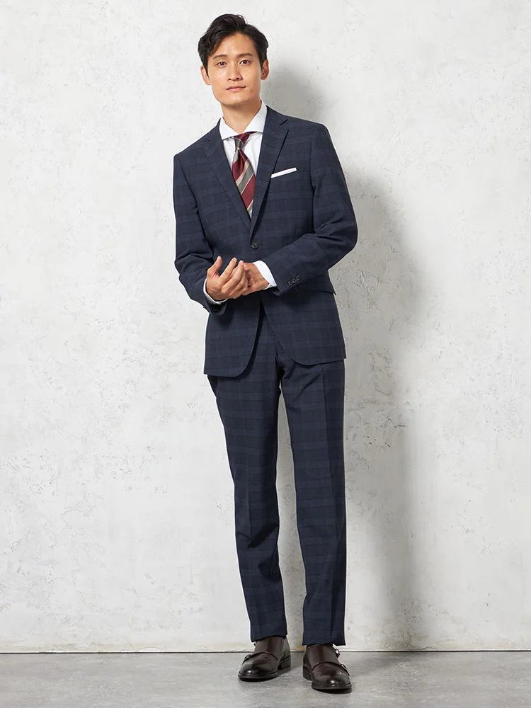 【上下ウォッシャブル】スーツ 2つボタン ウールライク チェック nero 秋冬【スリムデザイン】