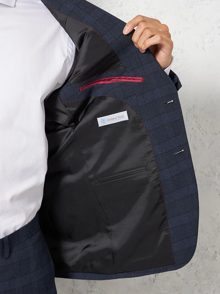 【上下ウォッシャブル】スーツ 2つボタン ウールライク ウインドペン nero 秋冬【スリムデザイン】