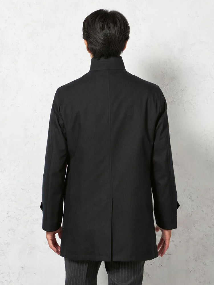 【ウールライク軽量素材】ステンカラーコート ライナー付 撥水 イージーケア バーズアイ リッケンバッカー 秋冬