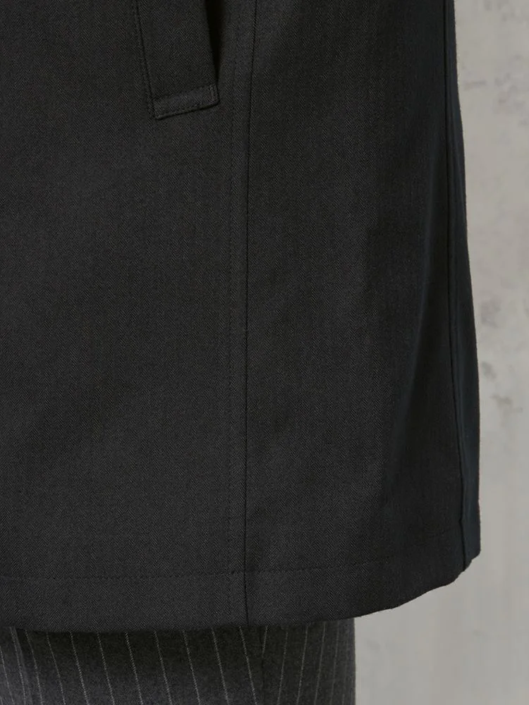 【撥水&防風】シングルセミトレンチAラインコートライナー付ヘリンボンnero秋冬【スリムデザイン】