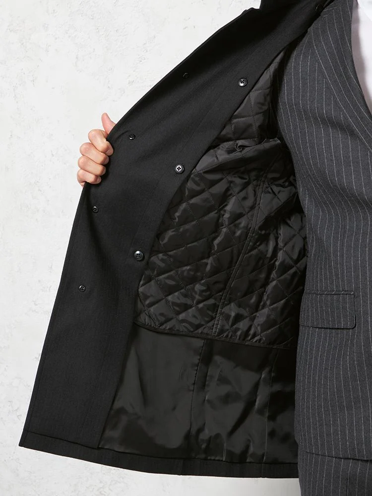 【軽量ニット】コートチェスターコートストレッチ背上部キルト無地nero秋冬【スリムデザイン】