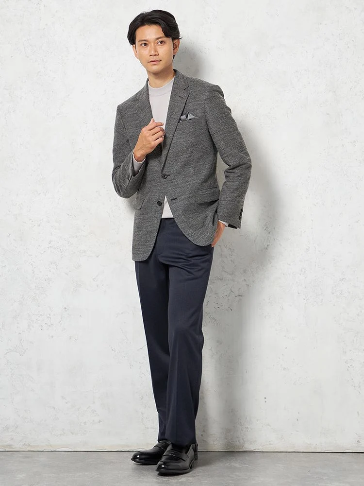 2つボタンのデザインで、クラシックなスタイルを演出。落ち着きと品のあるアイテムです。