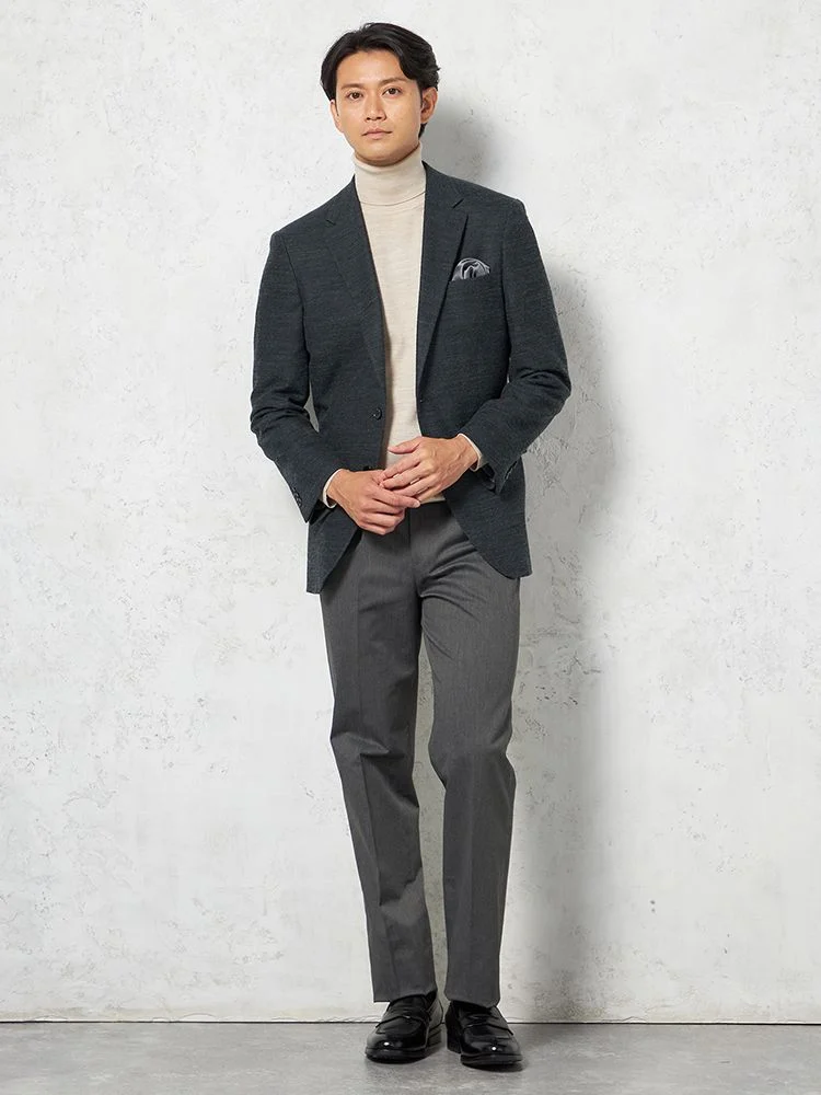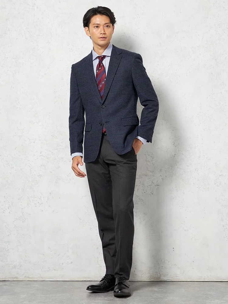 切り込みが1本のセンターベントデザインです。細身でスッキリとしたシルエットが特徴で、快適な着心地を提供します