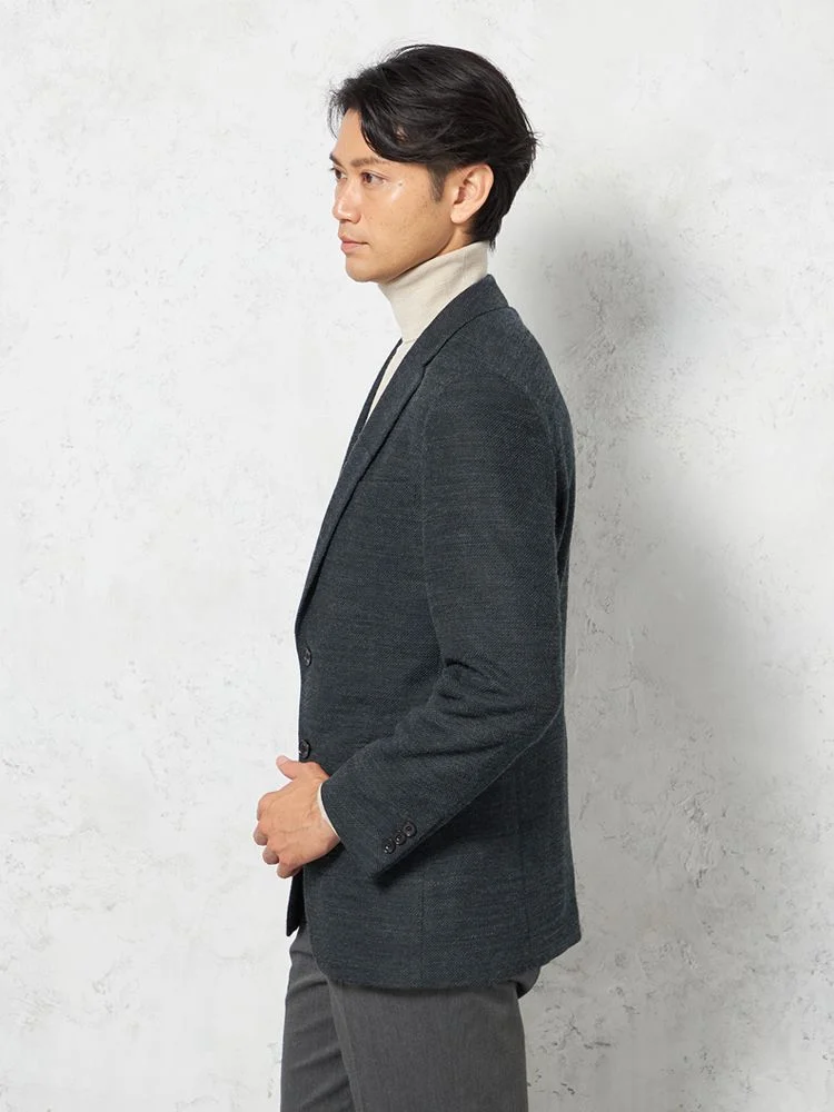 【i-Jacket-アイジャケット-】ジャケット2つボタン尾州ニット素材ウォッシャブルバーズアイリッケンバッカー
