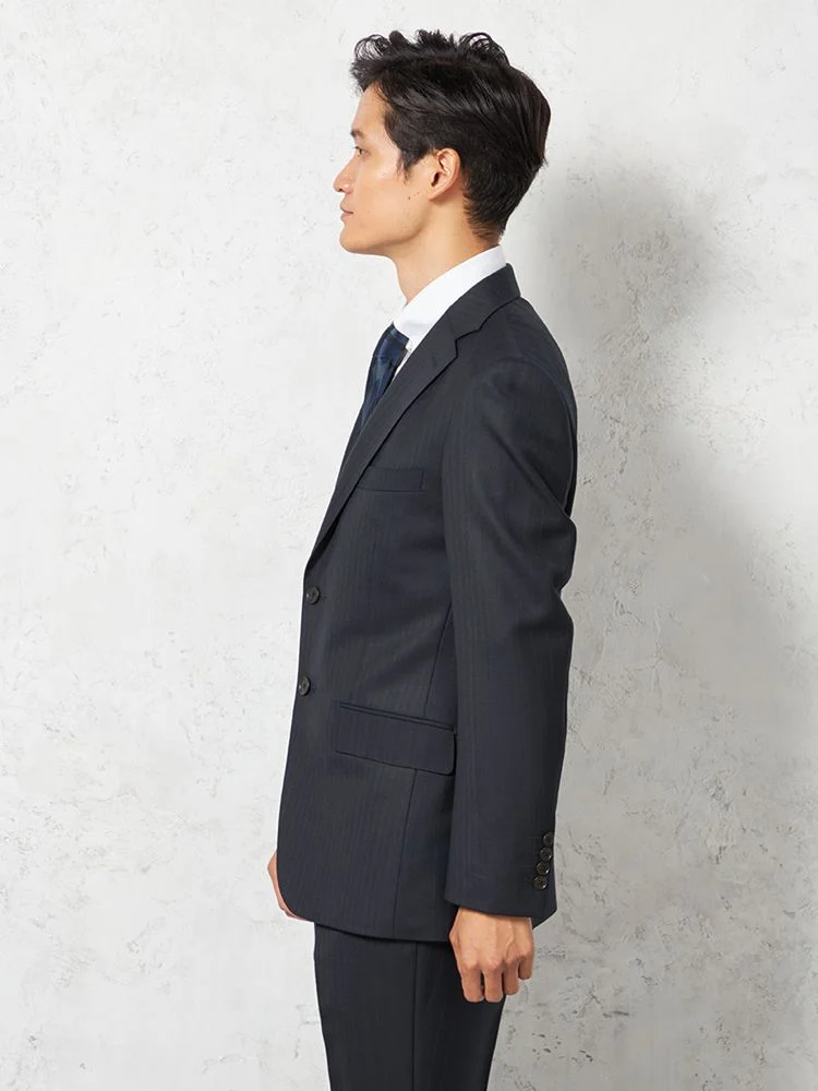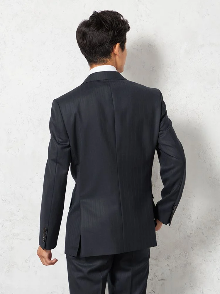 【即納】【WEB限定】スーツ2つボタンネイビーシャドウストライプ上下ウォッシャブル3シーズン対応