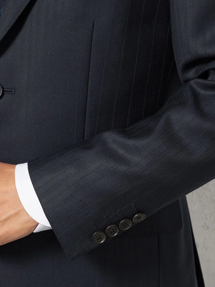 表地は品の良い光沢のある毛100%素材を採用しており、織で表現したストライプが洗練されたムードに。