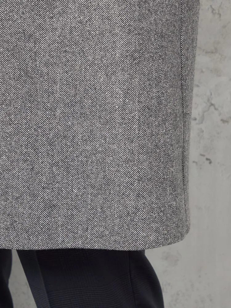 【ウール100%】クラシックベルテッドウールコートベルト付きヘリンボンnero秋冬【スリムデザイン】