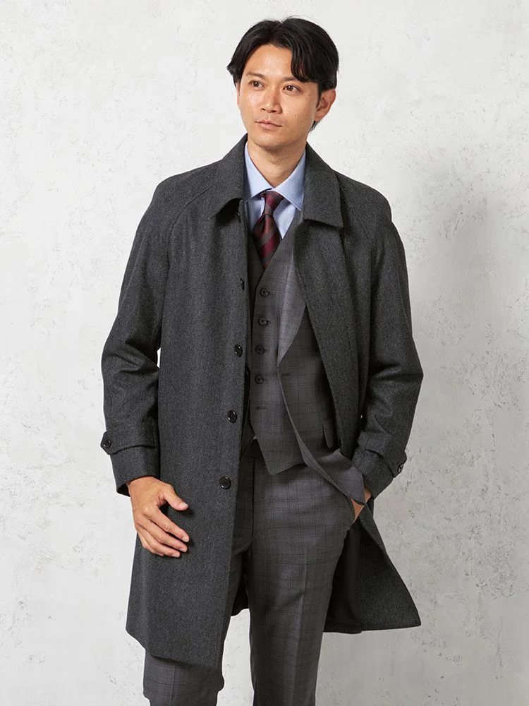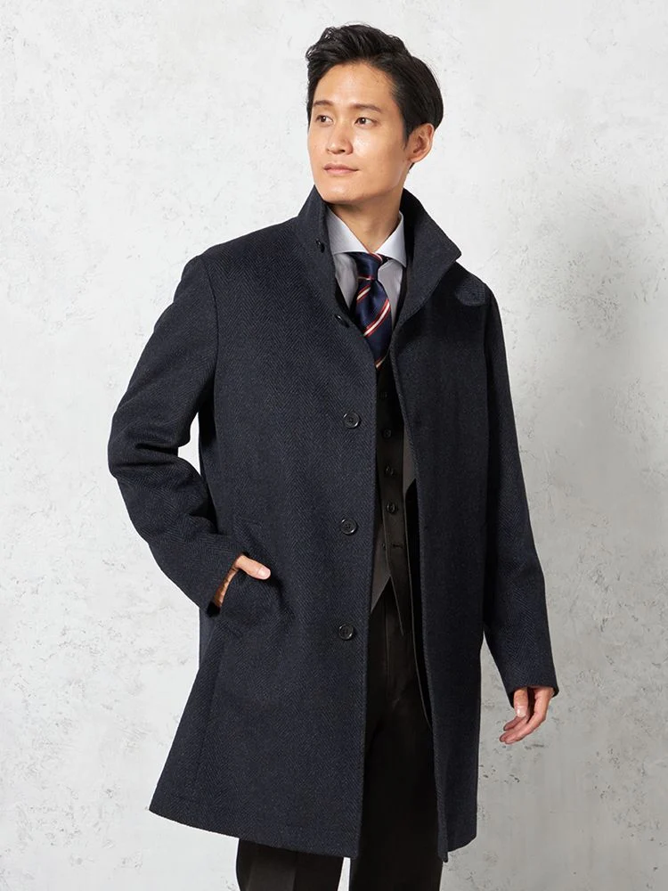 尾州産の高品質ウール素材を使用したウールステンカラーコートです。