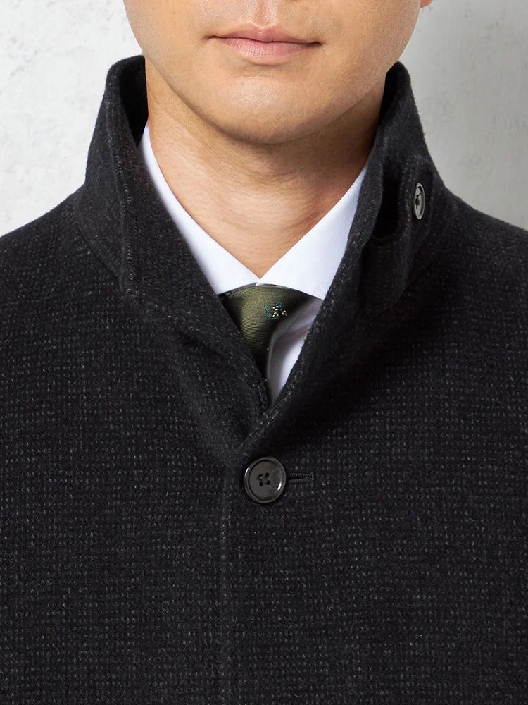 【尾州アンゴラ混素材】スタンドカラーコート ミドル丈 織柄無地 STOVEL&MASON 秋冬(C.グレー)