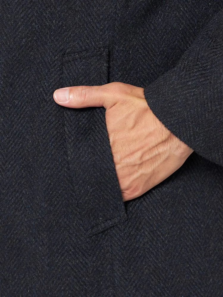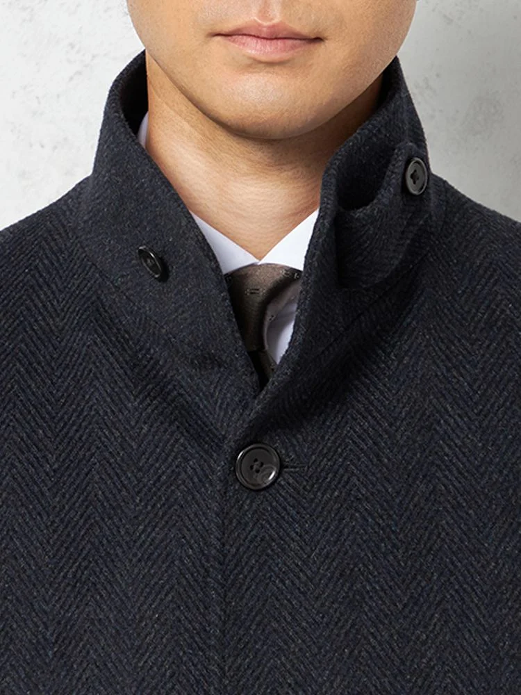 【ウール混】ステンカラーコート尾州産ウール使用ラグランスリーブヘリンボンリッケンバッカー秋冬