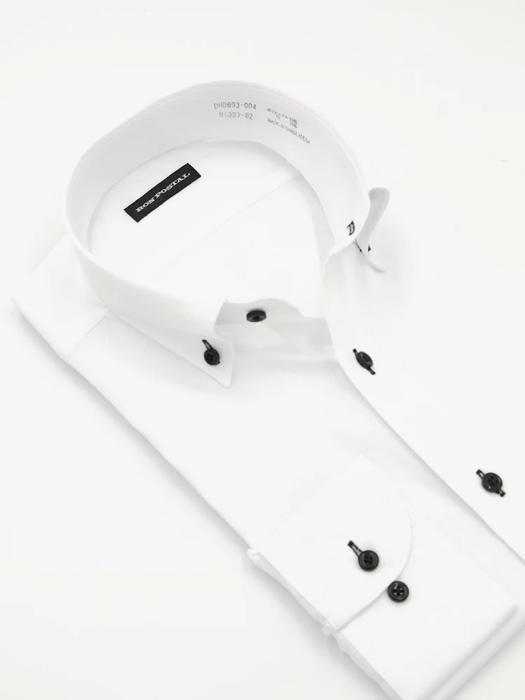 【形態安定】長袖 ワイシャツ ボタンダウン イージーケア 白ドビー RON POSTAL 通年(ホワイト)