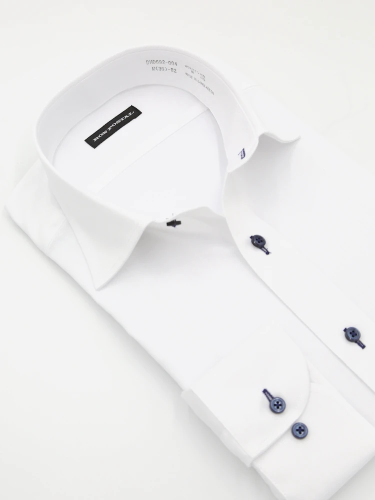 形態安定加工を施した、お手入れ簡単な長袖ワイシャツ。