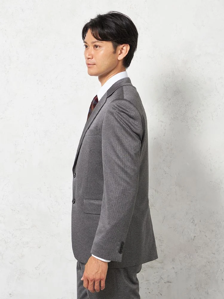 【上下ウォッシャブル】スーツ 2つボタン ファイテン ニット素材 千鳥格子 PHITEN【i-Suit-アイスーツ-】 秋冬(C.グレー)