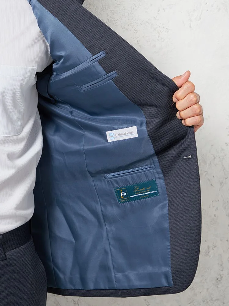【上下ウォッシャブル】スーツ2つボタン抗ピリング加工ストレッチウインドペンネイビー【i-Suit-アイスーツ-】秋冬