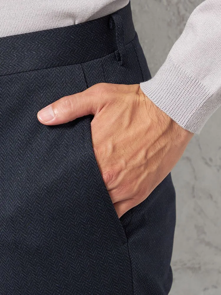 【ウォッシャブル】パンツ ノータック【i-Pants-アイパンツ-】全方向ストレッチ ヘリンボン リッケンバッカー 秋冬(ブラック)