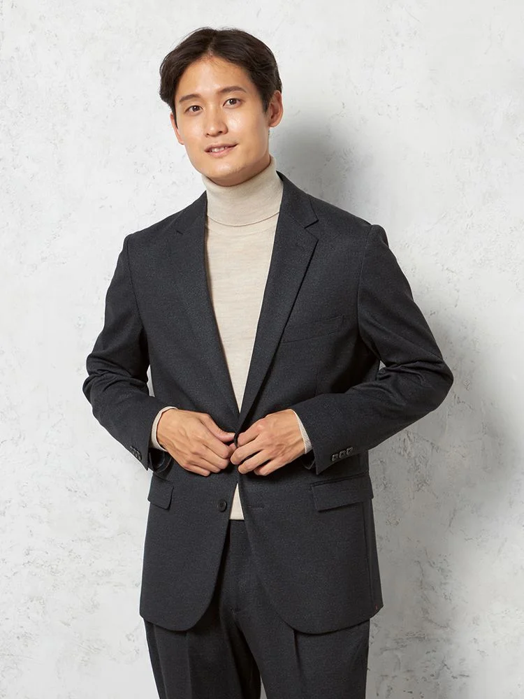 切り込みが1本のセンターベントデザインです。細身でスッキリとしたシルエットが特徴で、快適な着心地を提供します