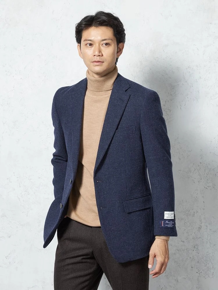 【ストレッチ】ジャケット2つボタンTOLLEGNO社生地使用キュプラ裏地グレンチェックS&MBLUELABEL