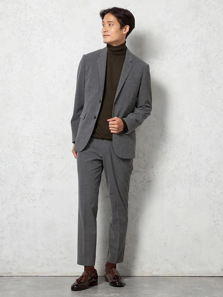 同じ生地で仕上げたジャケットと合わせれば、セットアップの完成です。