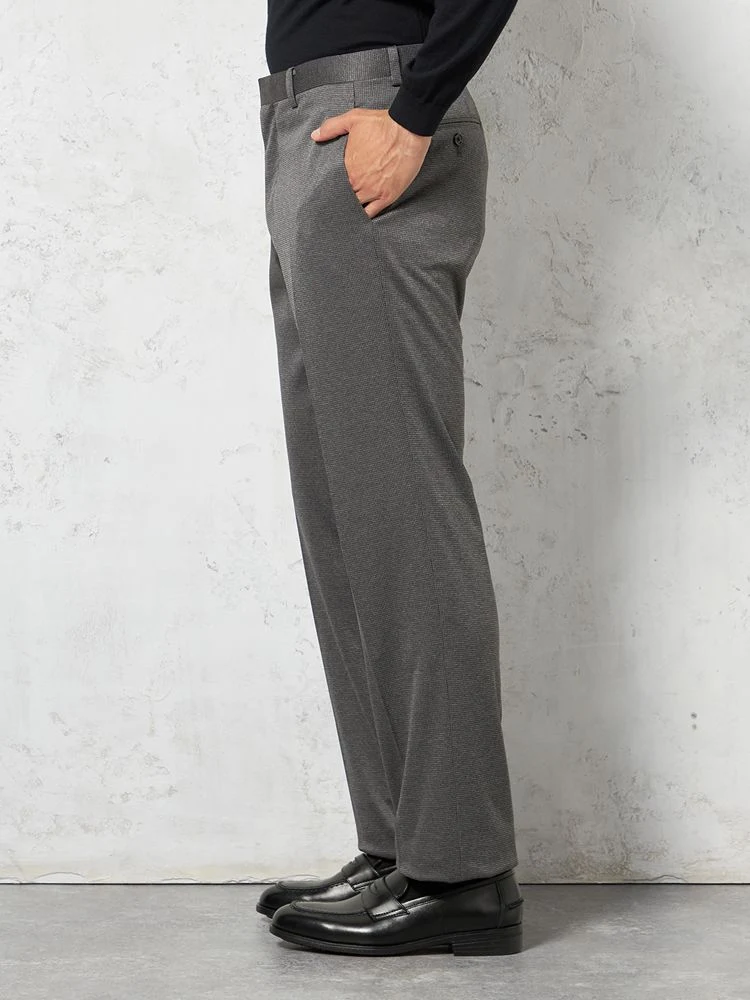 【ウォッシャブル】パンツ ノータック ファイテンコラボ スラックス 千鳥格子 PHITEN 秋冬(L.グレー)