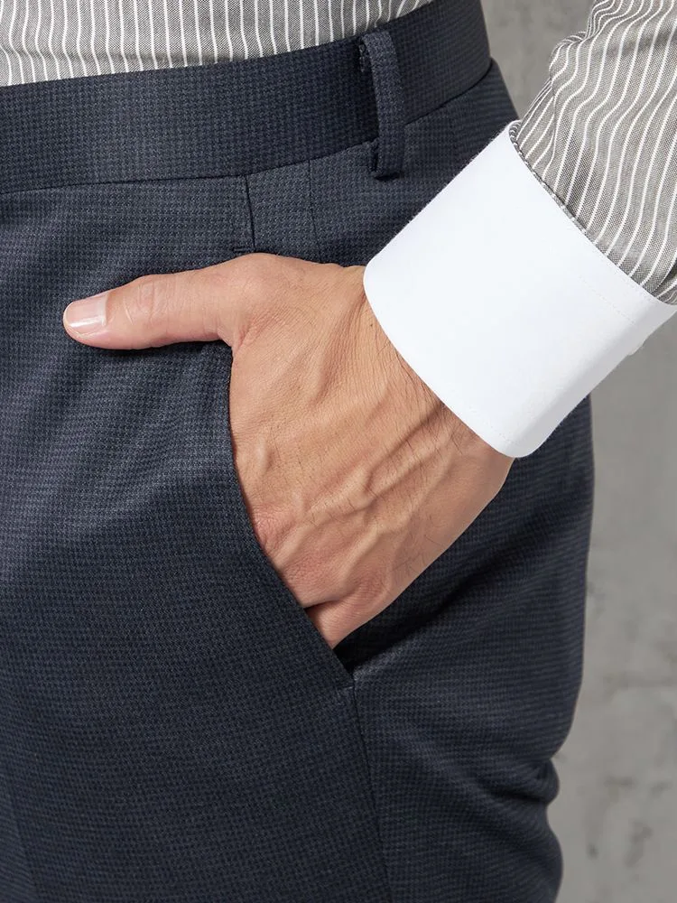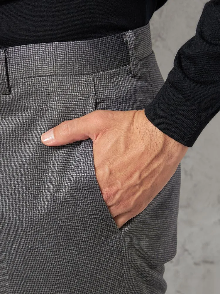 【ウォッシャブル】パンツノータック裏起毛スラックス千鳥柄nero秋冬【スリムデザイン】