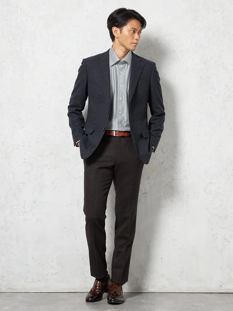 切り込みが2本のサイドベンツ仕様のアイテムです。クラシックでエレガントな印象を与えます。