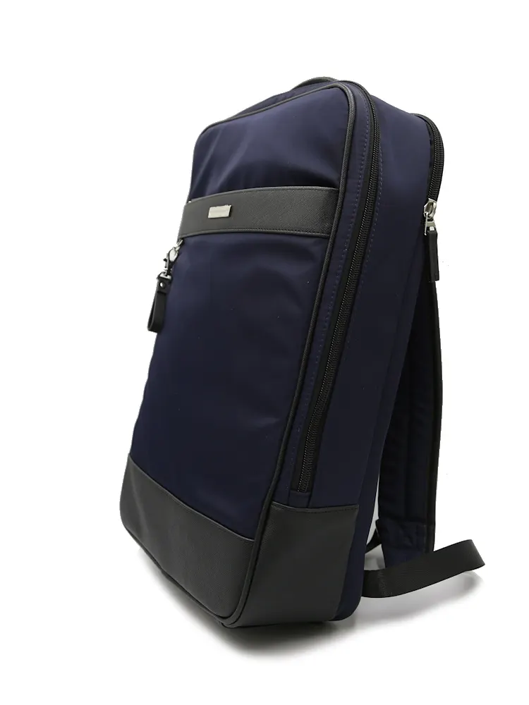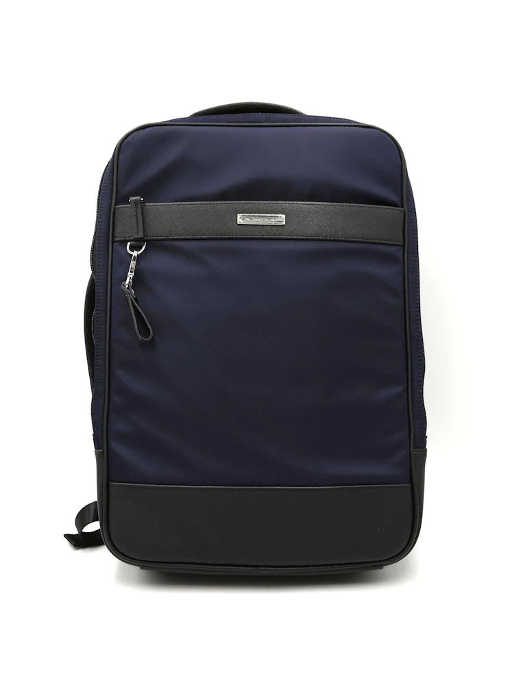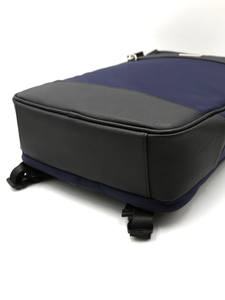 【KATHARINE E HAMNETT-キャサリン・イー・ハムネット-】3WAYバック ナイロン×サフィアーノ リュック/ブリーフ(タテ・ヨコ) 無地 通年(ブラック)