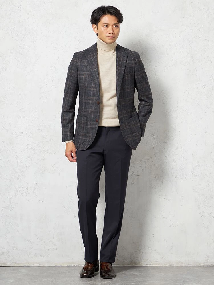 【ウォッシャブル】パンツノータックファイテンコラボスラックス千鳥格子PHITEN秋冬