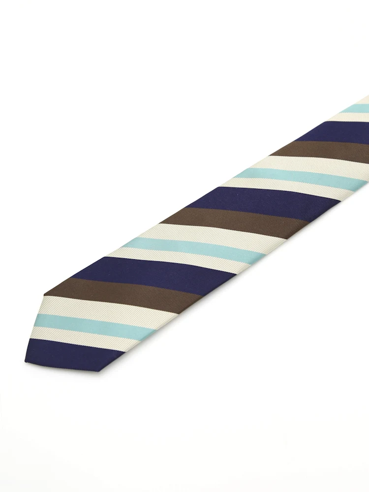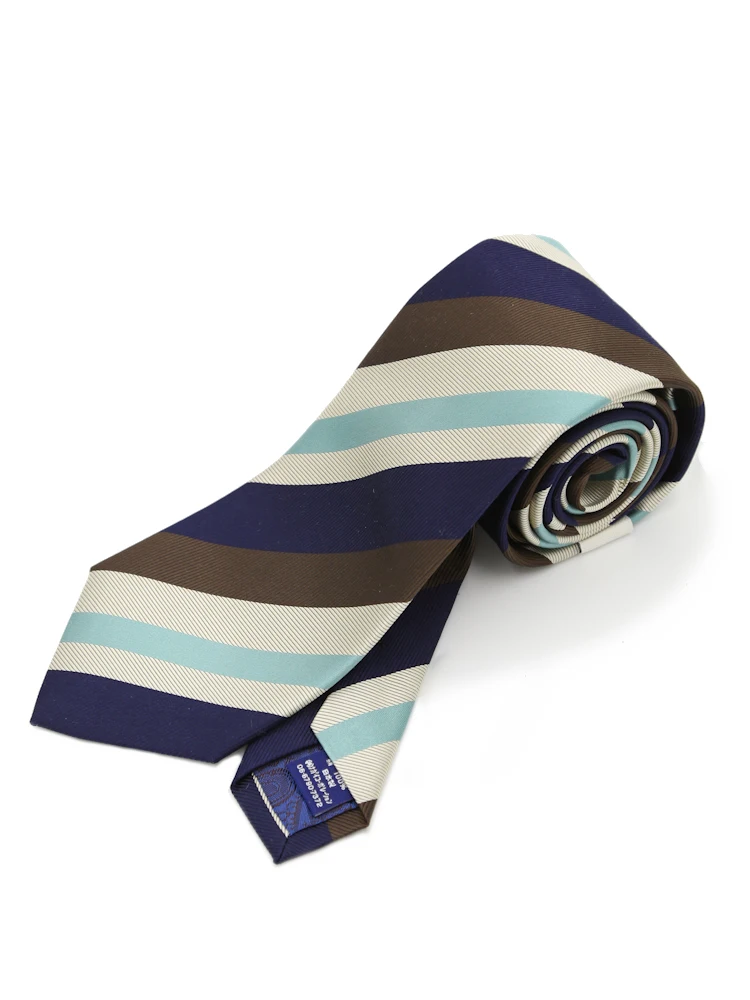 イタリアのアーカイブよりリプロダクトしたワイドストライプ柄にトレンドカラーで彩られたネクタイ。