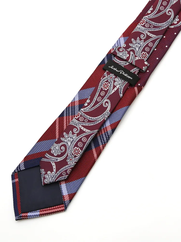 【クレイジーパターン】ネクタイ シルク100% パッチワーク柄(ペイズリー/ドット/チェック) ARTHUR PHILLIPPE-アーサーフィリップ-(ワイン)