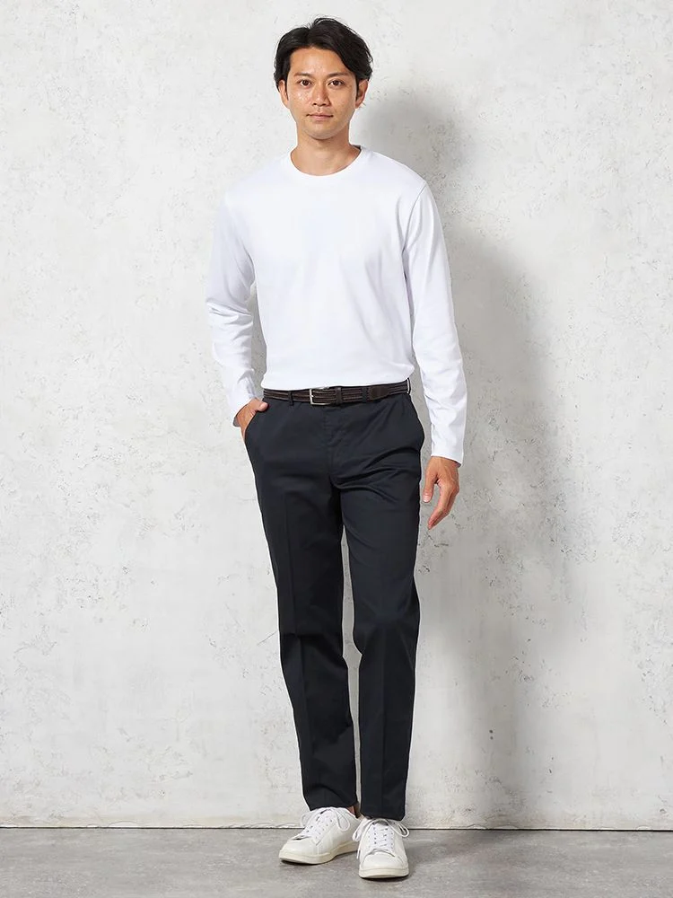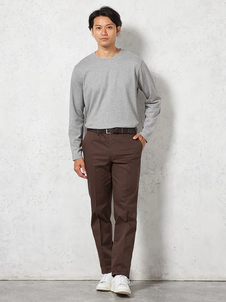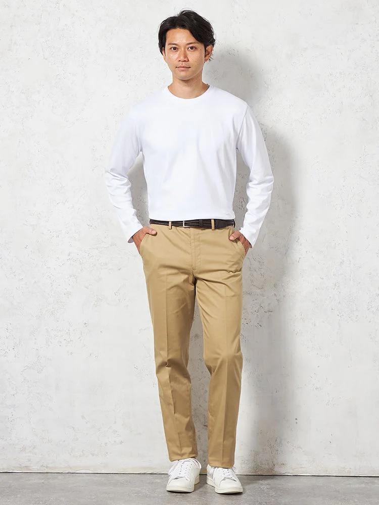 センタープレスが取れにくいスーパークリース加工を施してあるため、きれいめコーデにもぴったりな一本です。