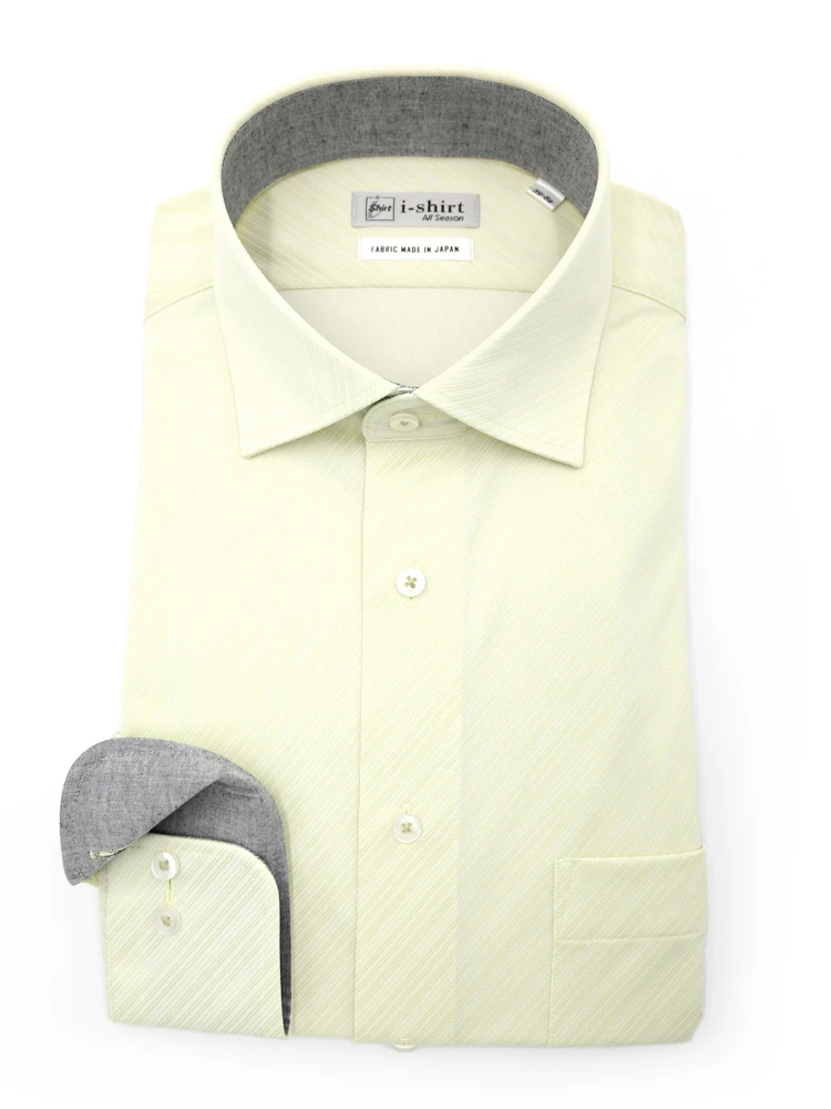 【完全ノーアイロン】長袖 アイシャツ セミワイド 吸水速乾 ストレッチ ツイル 織柄無地 ワイシャツ i-shirt 通年(L.グリーン)