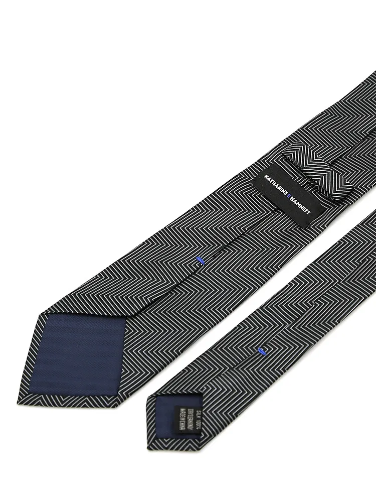 【KATHARINE E HAMNETT-キャサリン・イー・ハムネット-】ネクタイ レギュラー シルク100% ヘリンボーン(ブラック)
