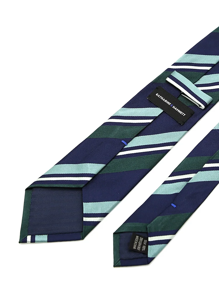 【KATHARINE E HAMNETT-キャサリン・イー・ハムネット-】ネクタイ レギュラー シルク100% サテンストライプ(グリーン)