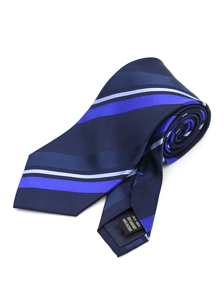 【シルク混】ネクタイレギュラーリクルートタイネイビーストライプnero通年