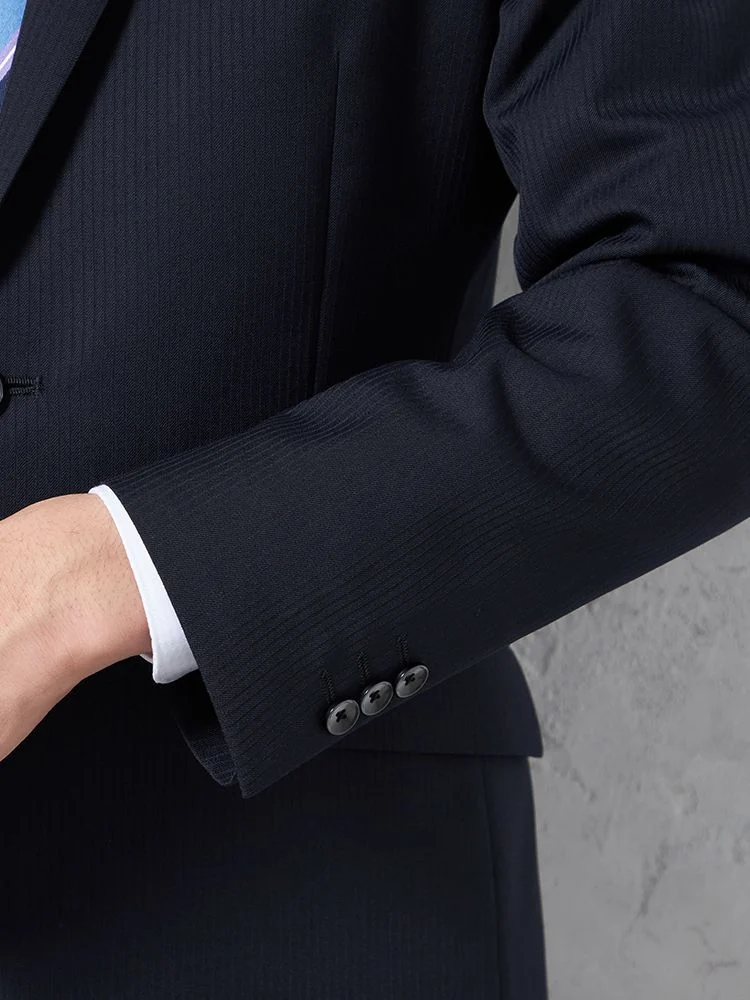 【即納】【WEB限定】スーツ2つボタンネイビーシャドウストライプ上下ウォッシャブル3シーズン対応