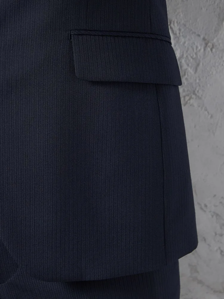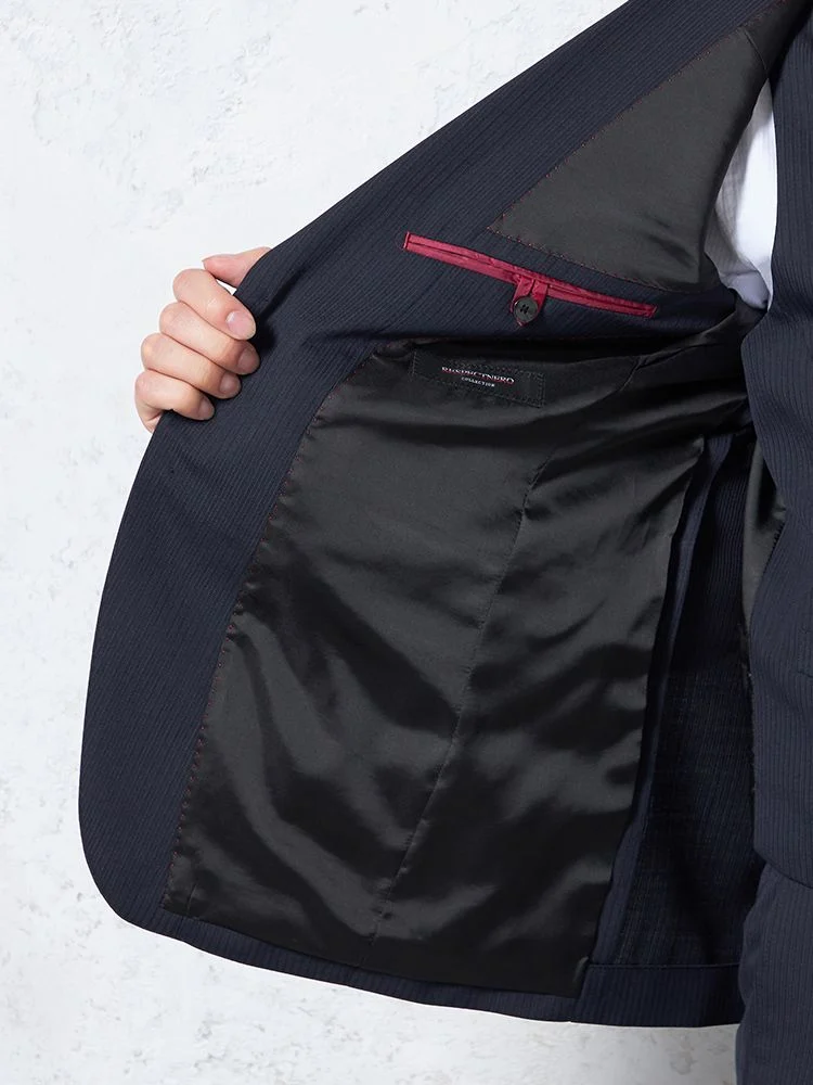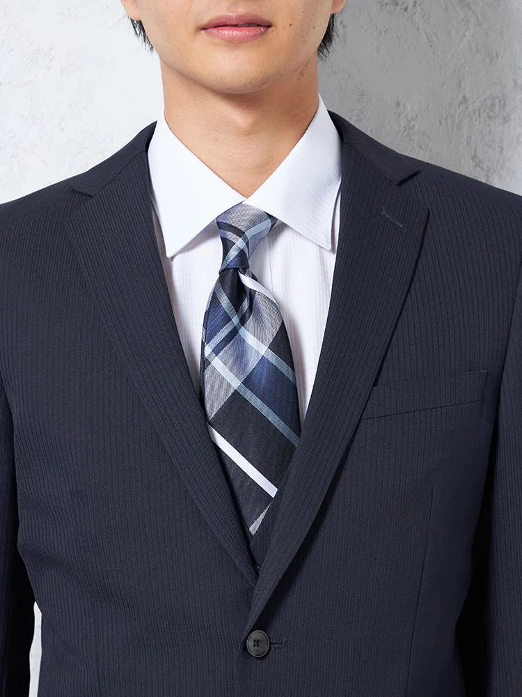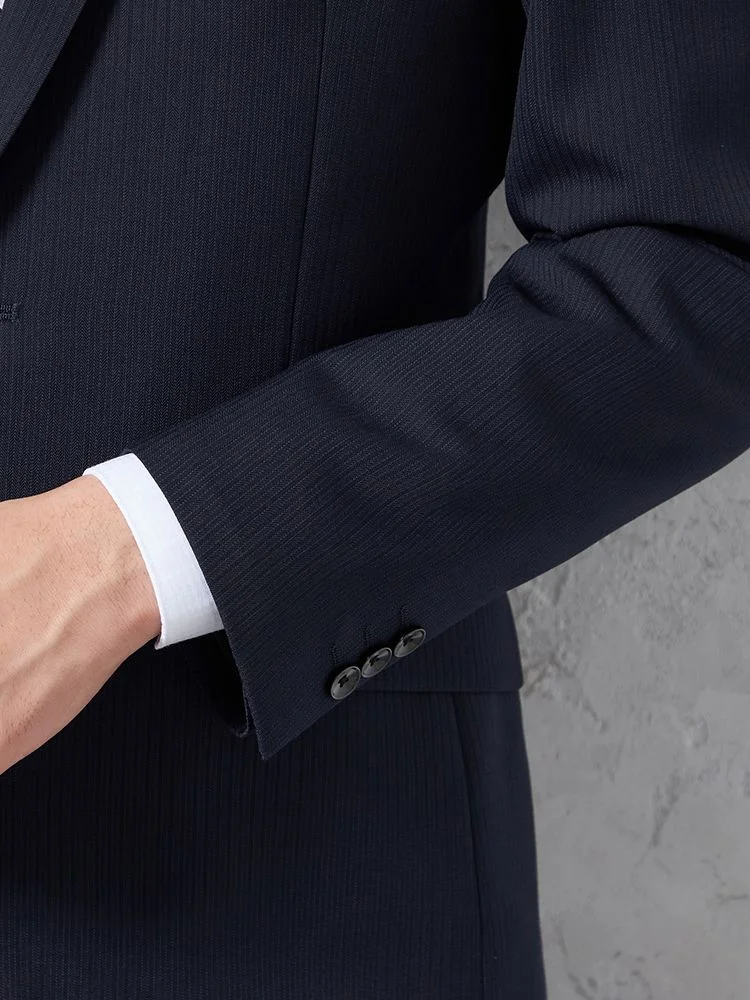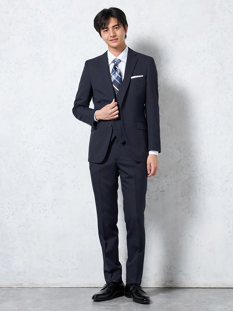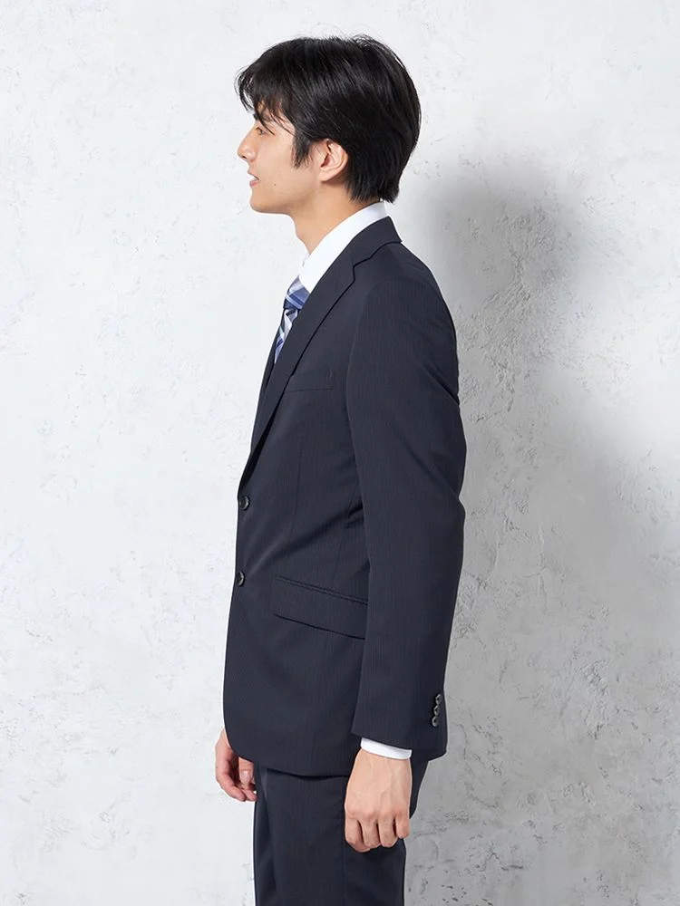 【即納】【WEB限定】スーツ2つボタンネイビーシャドウストライプ上下ウォッシャブル3シーズン対応