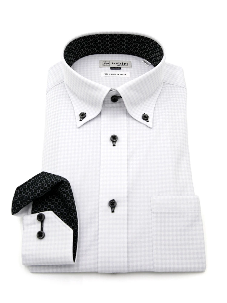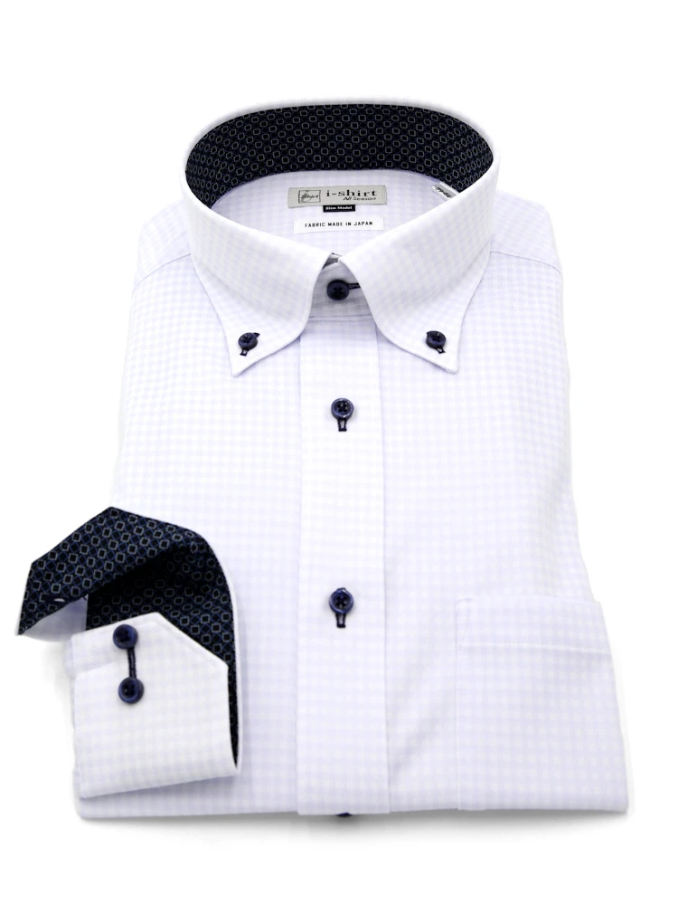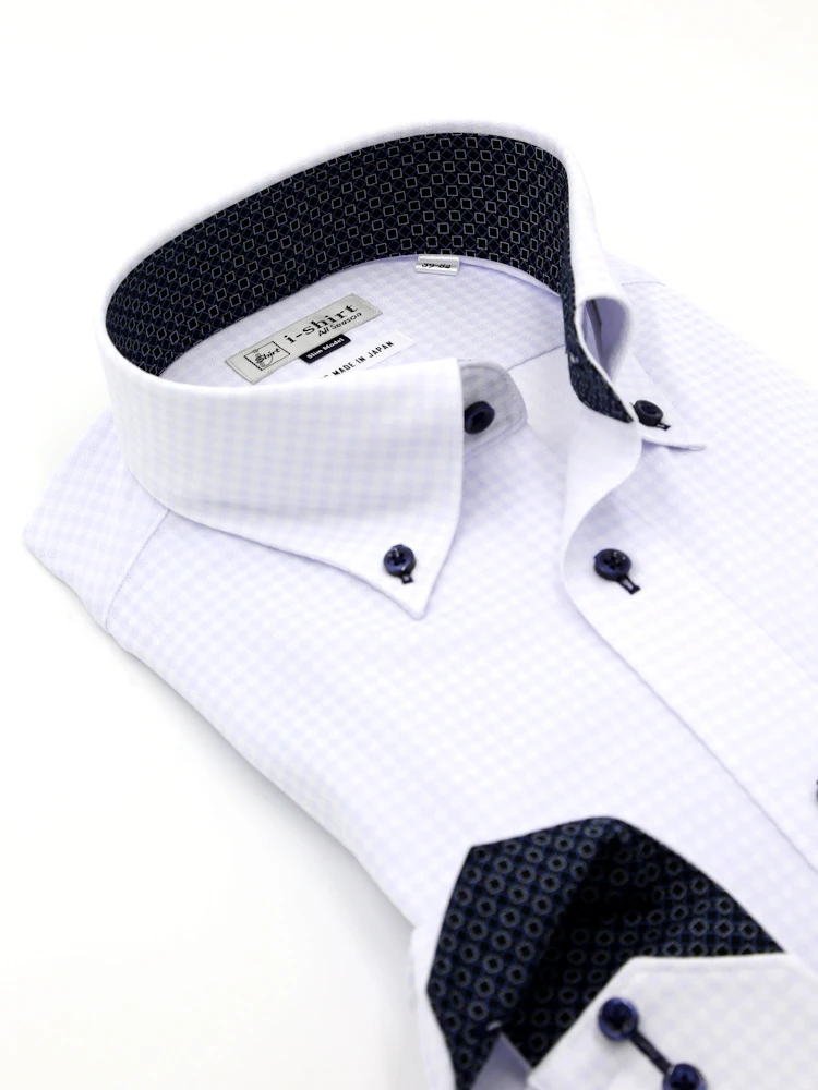 【即納】WEB限定【完全ノーアイロン】長袖アイシャツボタンダウンストレッチロンビック柄i-shirt通年
