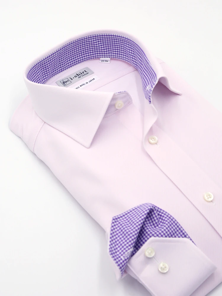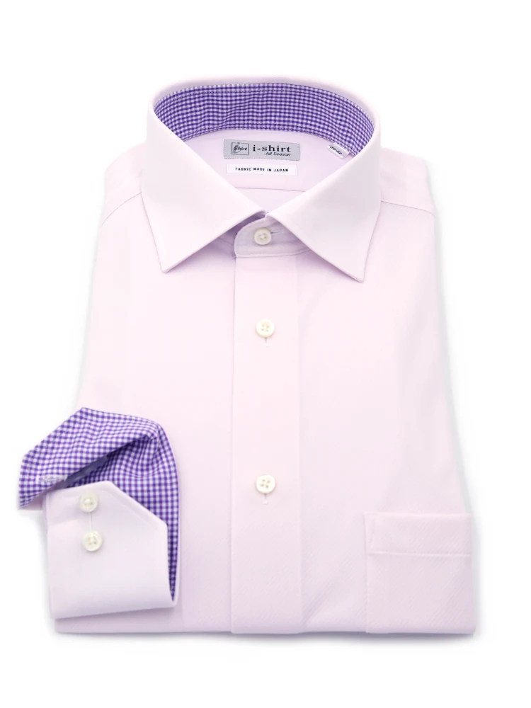【完全ノーアイロン】長袖 アイシャツ セミワイド ストレッチ 吸汗速乾 ツイル 織柄無地 ワイシャツ i-shirt 通年(L.ピンク)