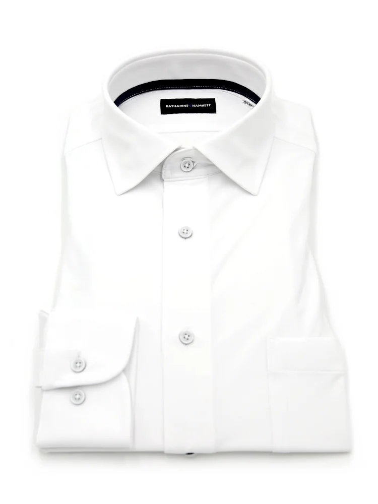 【KATHARINE E HAMNETT-キャサリン・イー・ハムネット-】長袖 ワイシャツ セミワイド 360°ストレッチ 吸水速乾 無地 通年